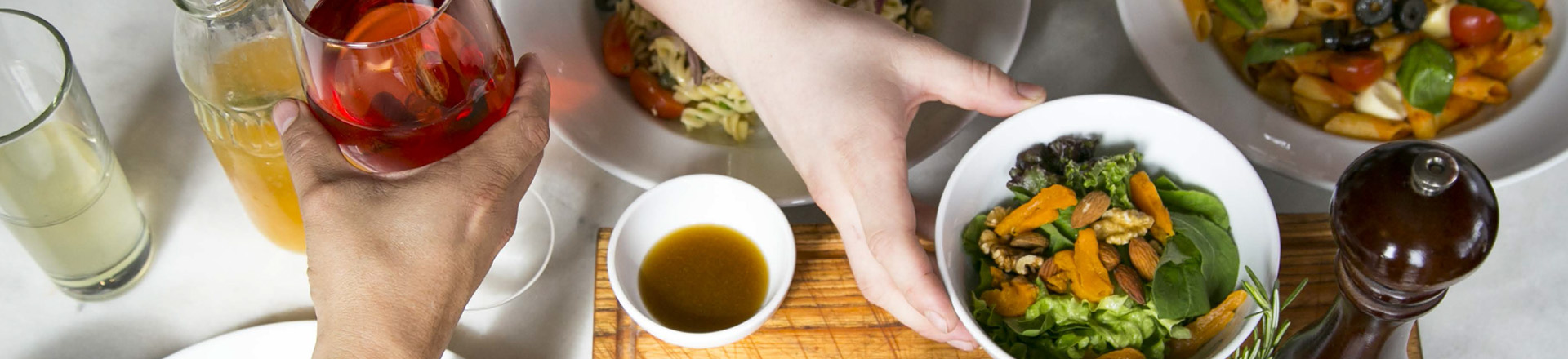 Hojas de espinaca, queso en feta, calabaza asada, castañas de cajú, tomates cherrys y miel especiada.